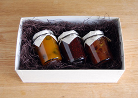 季節のおすすめをセレクトした3本入り。朝食だけでなく料理の調味料や飲み物にもなるMiAのコンフィチュール。お祝いやお礼の気持ちを季節の素材で贈るギフト。