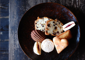 - オーガニックの小麦粉や砂糖、ドライフルーツやナッツ、仏産のラム酒の香りが豊かなフルーツケーキや本物のバターが香るフィナンシェ、マドレーヌ、ダックワーズなど多種。